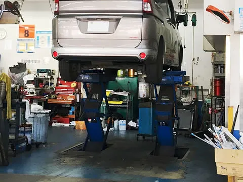 当店は国に認められた認証工場。だから車検・修理に必要な最新設備が揃っているんです。また時間を気にせずご相談いただける商談スペースや、車検・修理中もゆっくりとお過ごしいただける待合スペースを完備しております。