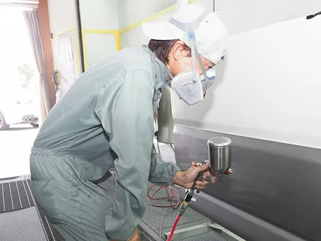 ホコリやチリをシャットアウトしてくれる塗装ブースを完備。塗装ブースで施工することで仕上がりにも違いがでます。