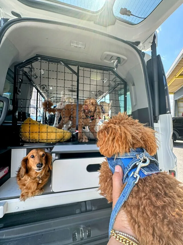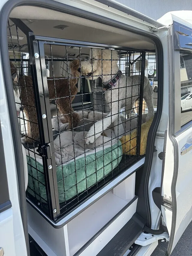 後部ドアを開けると、まず目に入るのはワンちゃんたちがくつろぐ専用スペース。